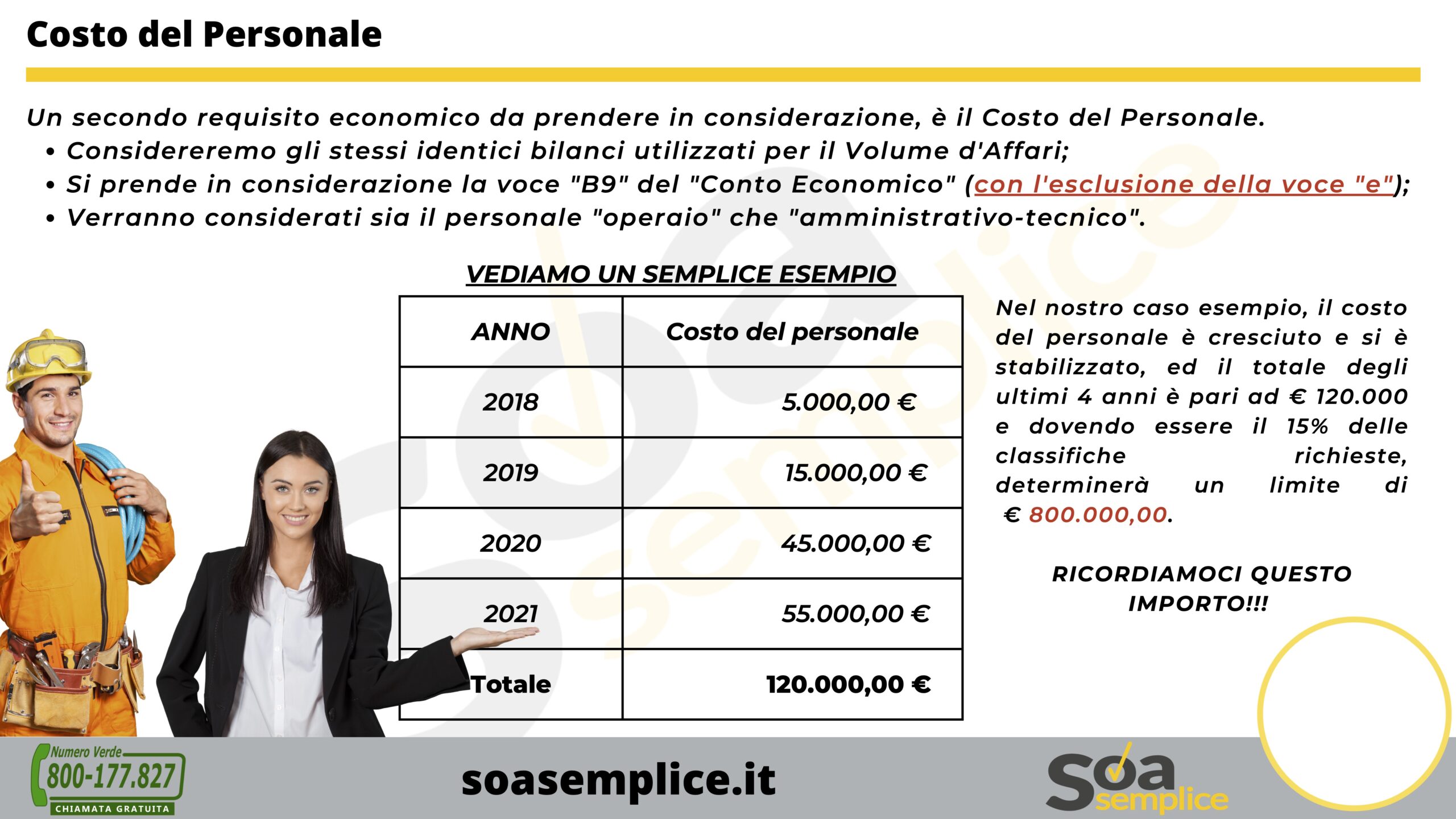 Il secondo requisito per il calcolo del limite massimo di attestazione è il costo del personale.